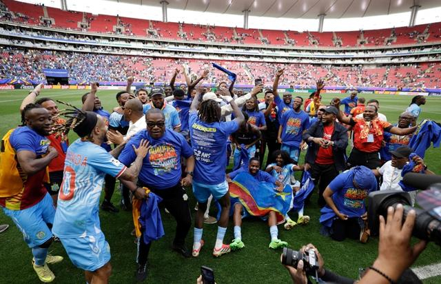 3月31日,刚果(金)队成员在晋级后庆祝。 当地时间3月31日,在墨西哥瓜达拉哈拉举行的2026年世界杯预选赛洲际附加赛决赛中,刚果(金)队1比0战胜牙买加队,晋级美加墨世界杯正赛。 新华社/法新